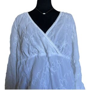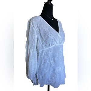 CATO Woman’s XL Sheer White Ruffled V-Neck Blouse