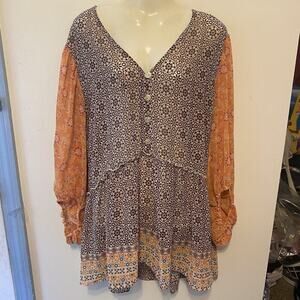 CATO Women 22/24W Peasant Tiered Tunic Top Flowy Sheer Floral Coastal Bohemian
