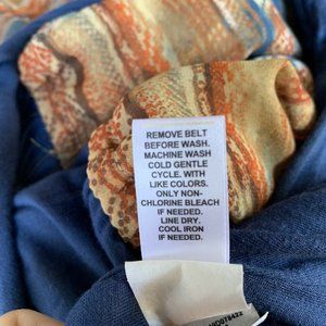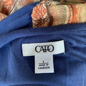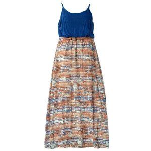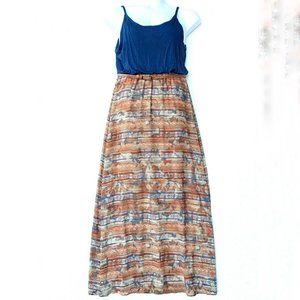 CATO Women Dress Size Large Blue Brown Maxi Sleeveless Round Neck Belt Pullover