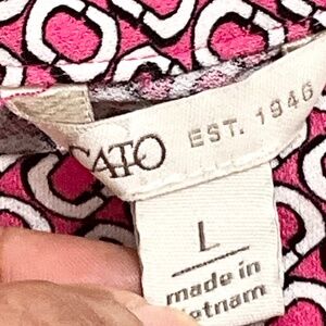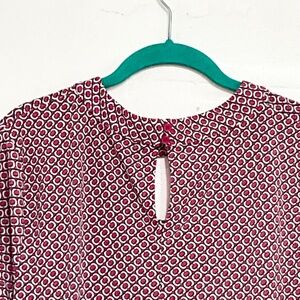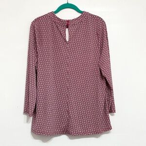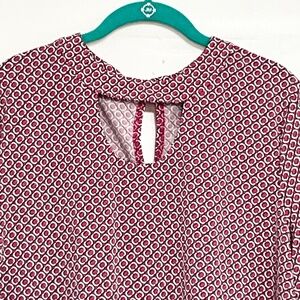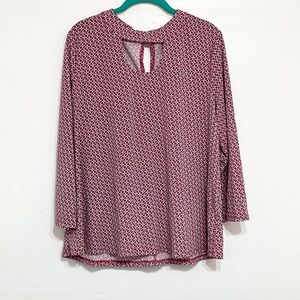 CATO Women Knit Blouse Pink Geo Print Long Sleeve Keyhole Design Size Large