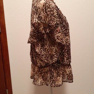 CATO Women's Animal Print Boho Accented Flowy Blouse Top Shirt - Size Large