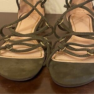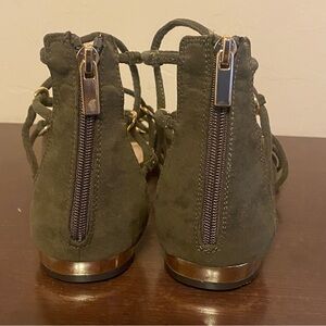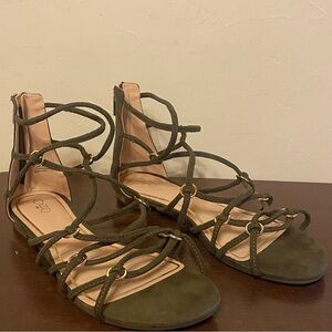 CATO Women’s Size 11W Suede Strappy Zip Back Closure Flat Sandals Green