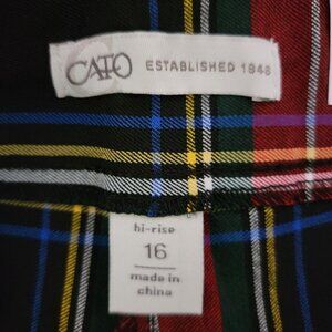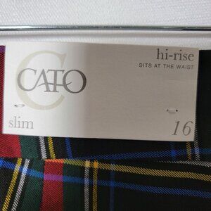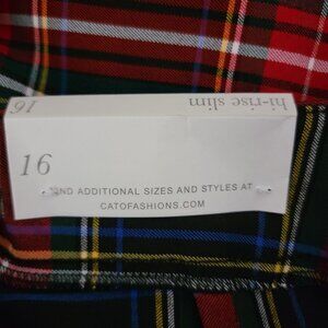 CATO Womens Tartan Plaid Pants Sz 16 Pull On Stretch Hi Rise Red Black Blue NWT