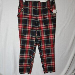 CATO Womens Tartan Plaid Pants Sz 16 Hi Rise Pull On Stretch , Decorative Front Pockets, Red Black Blue Plaid NWT