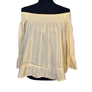 CATO Women’s Light Yellow Off The Shoulder Bell Sleeve Blouse Plus Sz 18/20W