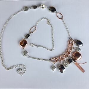 CATO mixed metals and rhinestone accent statement necklace (C1946 dangle tag)