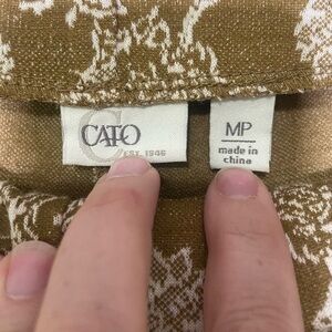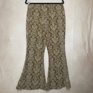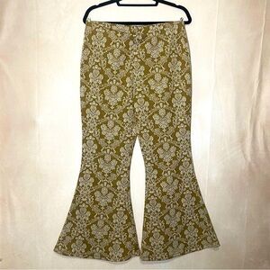 CATO women's M P gold yellow/ivory tapestry high rise flare pull on pants EUC