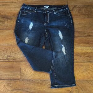 CATO Dark Denim Distressed High Waist Cropped Jean Capri Pants Size 12