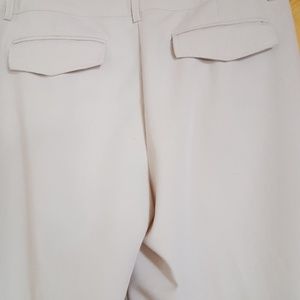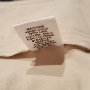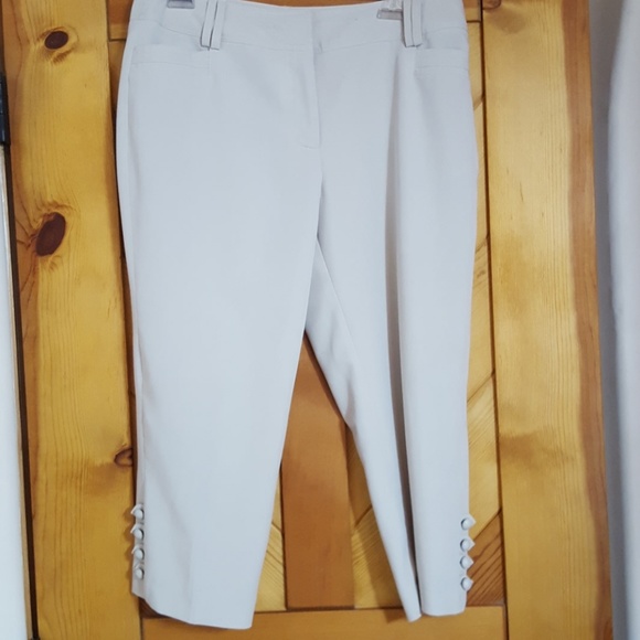 Oh, oh too small again. Beige/Taupe colored capris size 10. These are in excellent condition and worn mininally. A little on tbe dressy side but casual as well. No spots or tears. Help me clean out my closet!! I need more clothes . Buttons on the legs dress up the capris and they don't need ironing. They come out of the dryer wrinkle free.