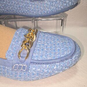 CATOS WOMENS BLUE TWEED LOAFER CHAIN ACCENT ON TOE LIKE NEW SIZE 9 EUC