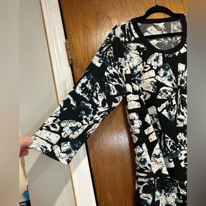 Cato Womens Black and White Pullover Blouse Size Large. Shark bite hem