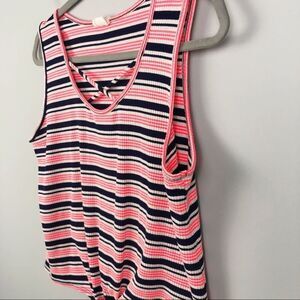 Super cute striped sleeveless top by Caution to the Wind. White, blue, and neon coral stripes. Tie front. X straps at the bust. Great condition. Size X-Large (Xlarge) but fits more like a large.