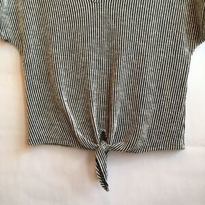 EXCELLENT CONDITION CAUTION TO THE WIND TIE FRONT CROP TOP IN BLACK AND WHITE STRIPES