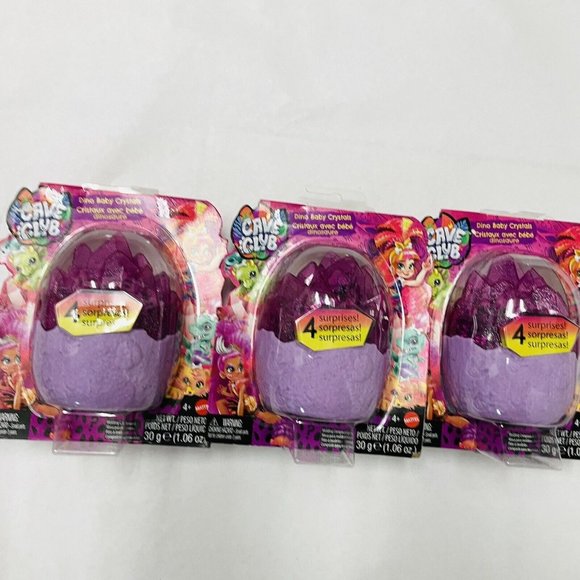 CAVE CLUB DOLLS Pink Dino Baby Crystals Surpise Pet Mattel. Brand new Set of 3 Please ask any questions prior to purchasing