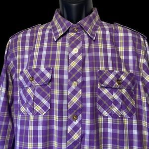 CAVI Product of Great Taste Long Sleeve Button Up Purple Plaid Shirt Size XL