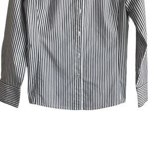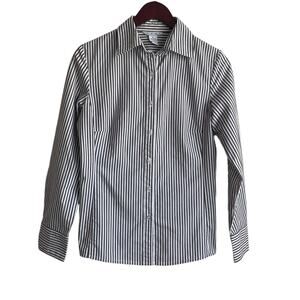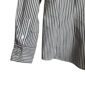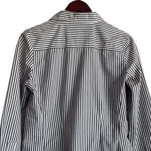 CAbI Women Top M Gray Striped Button Up Stretch Office Workwear Minimalistic