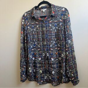 CAbi 129 Festival Blouse Geometric Pattern Button Front Semi Sheer Size L