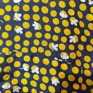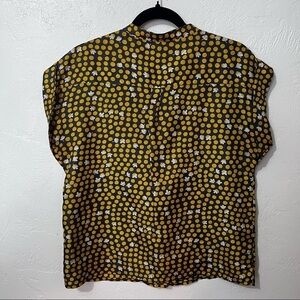 CAbi #183 Clover Dot gray & yellow silk top