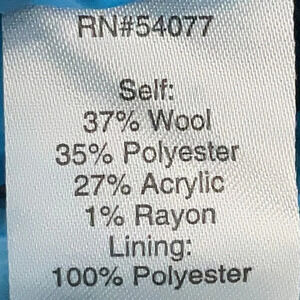 • 37% wool 35% polyester 27% acrylic 1% rayon shell