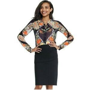 This semi-sheer floral button front blouse in size XS 0-2 is perfect for layering or wearing on its own.