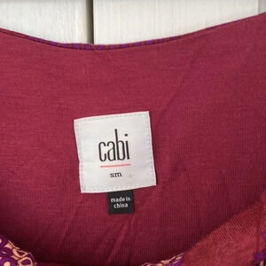 CAbi #3084 Celebrate Geometric Dot Drape Neck Maroon Cream Purple Blouse Rayon S
