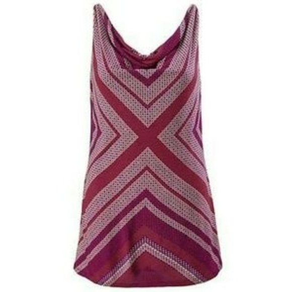 Description: Soft, body skimming camisole tank. Cute pattern detailing on the front, plain on the back. Geometric Printed Drape Tank Top Tunic. Cowl neck. fully lined. Machine washable. 100% rayon