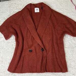 CAbi 3162 Short Sleeve Rosewood Oversized Sweater Cardigan Small