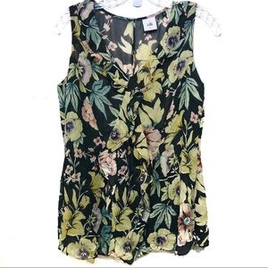CAbi #3265 Osaka floral sleeveless ruffle blouse size small
