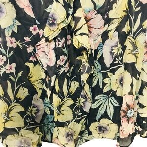 CAbi #3265 Osaka floral sleeveless ruffle blouse small. Great condition see photos for details. Approximate measurements 25” shoulder to hem and 18” pit to pit.