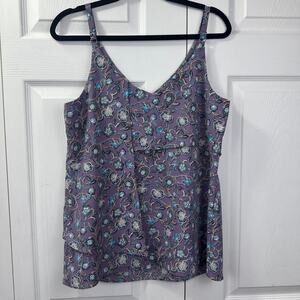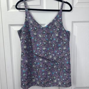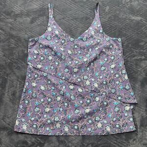 CAbi #3453 Floral Print Scrollwork Cami Top Sz Small Purple Dainty Whimsy Girly
