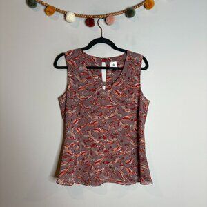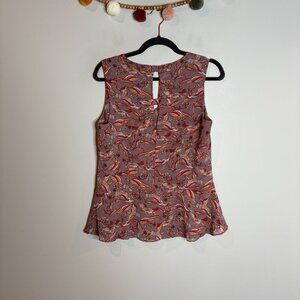 CAbi 3611 Good Luck Red Crane Print Peplum Tank top