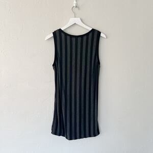 black and gray slanted stripes | rounded neckline | tunic length | stretch material | rayon/spandex
