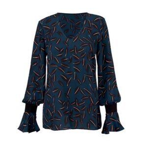 CAbi 3763 Shadow Leaf Blouse in Teal Size Large