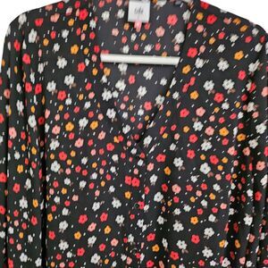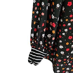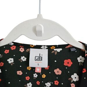 CAbi 3957 Cheerful Blouse Large Black Floral Striped Button Front Long Sleeve