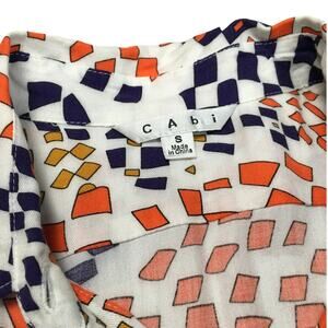 CAbi #404 Shirt Grand Prix Print Button Front Tunic Top Women's S Blue Orange