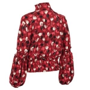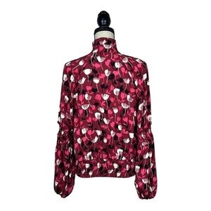 Add a touch of romance to your wardrobe with the CAbi Corsage Blouse, a gorgeous floral top featuring billowing bishop sleeves, ruffle accents, and a flattering smocked waist. Designed in a rich Wine Blossom print on a warm red background, this blouse is a standout piece from CAbi’s Fall 2021 collection.