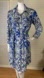 CAbi 422 Jewel Shirt Mini Dress • Blue/Tan & White • Abstract Patterns • V-Neck • Collar • Button Down • Self Adjustable Detachable Belt • 3/4 Roll Tab Sleeves • Two Upper Usable Pockets • Knee Length - Women’s Size Medium