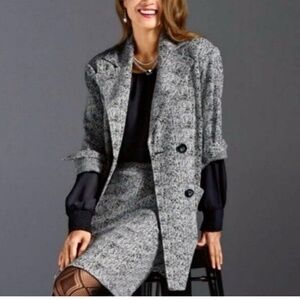 CAbi 4294 Agent Black Herringbone Blazer Length Double Breasted Medium