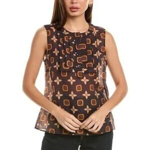 CAbi #4558 Women's Brown Black Crew Neck Louis Blouse Top Size XL