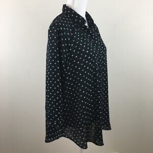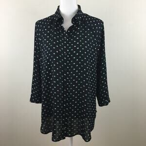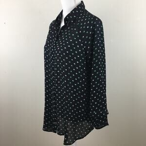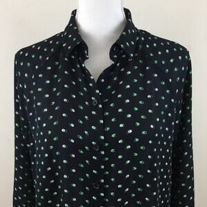 CAbi 5019 Martini Top. Size Small. Blue & green blouse with front button opening and long sleeves. Excellent used condition (100% polyester)