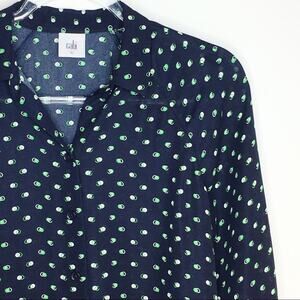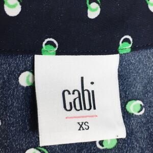 CAbi #5019 Womens Size XS Martini Blouse Button Up Navy Blue Green Preppy Core