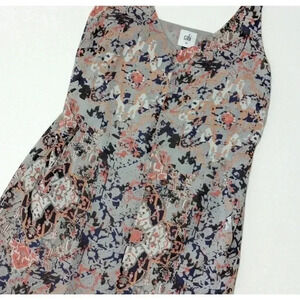 CAbi 5049 Fresco Print Gray Multicolor V Neck Slip Dress with Pockets Size XS