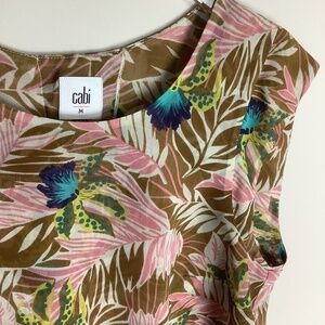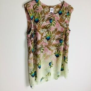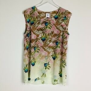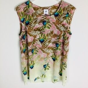 CAbi 5216 Tropical Print Parlor Top Split Back Layered Tank Blouse Womens Sz M
