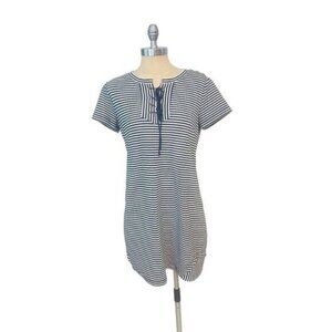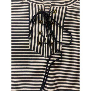 CAbi #5268 Captain Striped Lace Up Nautical Blue White Dress Small
