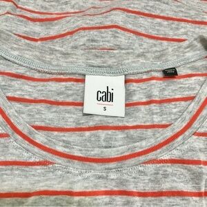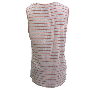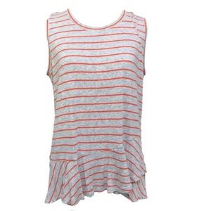 CAbi #5331 Gray Orange Striped Sleeveless Ruffle Peplum Tank Top Size Small