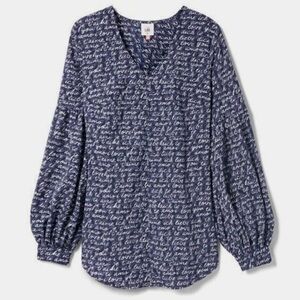 The flowy romance of this blouse is only further complemented by its graphic print: "I Love you" in multiple languages written in cursive! Features: V-Neck, Long Sleeve, Balloon Sleeve, Buttons at wrists. 100% Polyester.