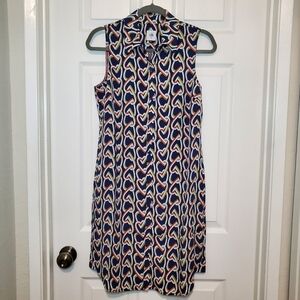 CAbi 5370 Amour Heart Sleeveless Button Down Shirt Dress Navy Blue Womens XS