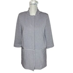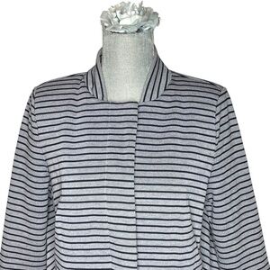 CAbi #5474 Dapple Stripe Car Coat Gray Blue Knit Jacket Ponte Knit Trench Sz M