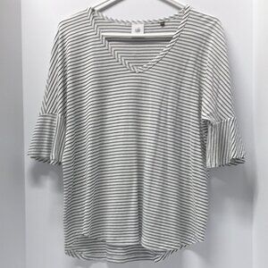 CAbi # 5558 Skipper Stripe Sailor Flutter Sleeve Tee in Black & White