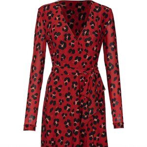 CAbi 5771 Vivien Siren Red Leopard Wrap Midi Dress V-Neck Holiday Dress